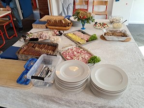Det var en dejlig dag med et godt frokostbord, på billedet mangler desværre de lune tarteletter.